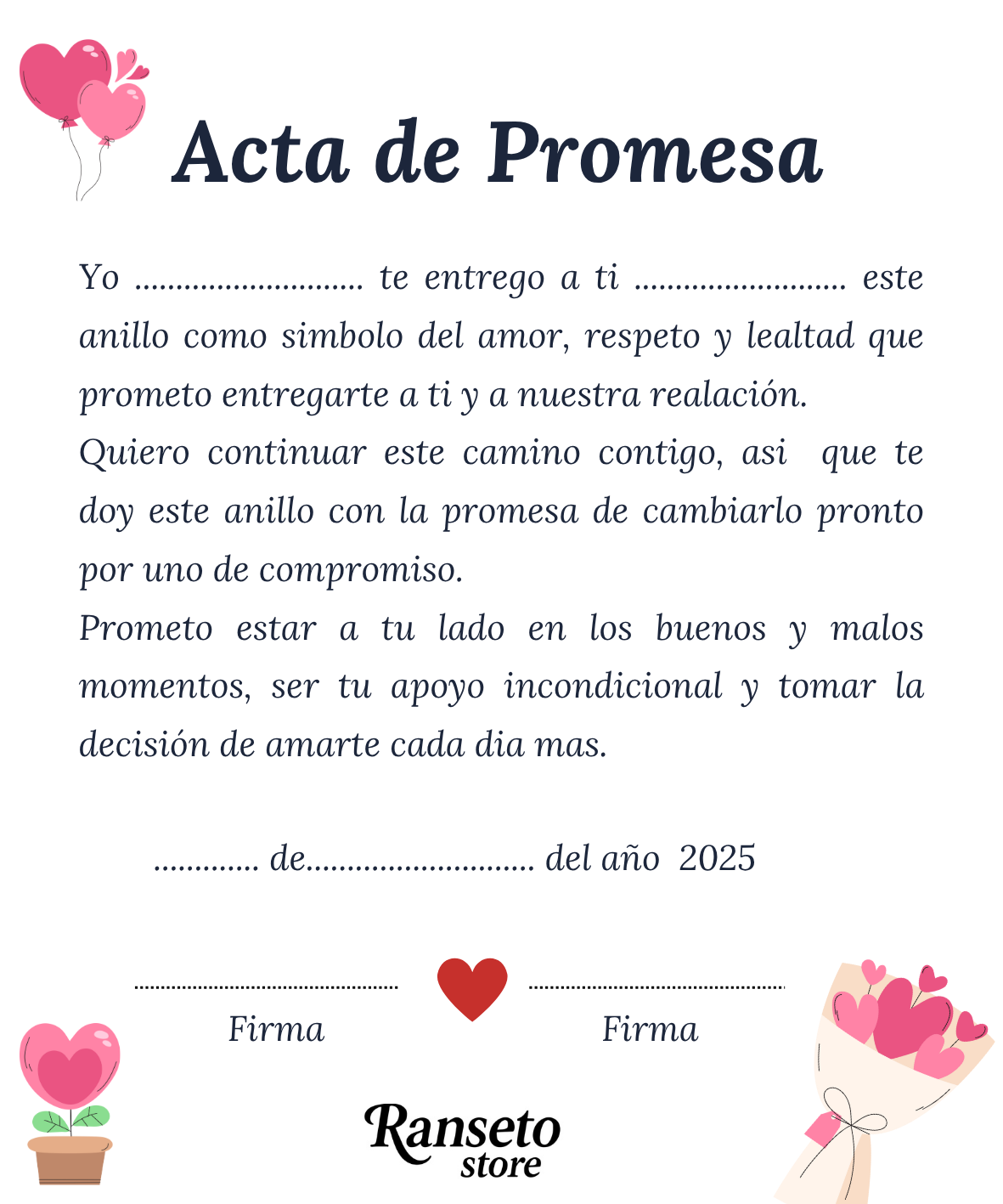 Incluye un Acta de Promesa de 12x10cm, para que le des ese sello a tu amor eterno.